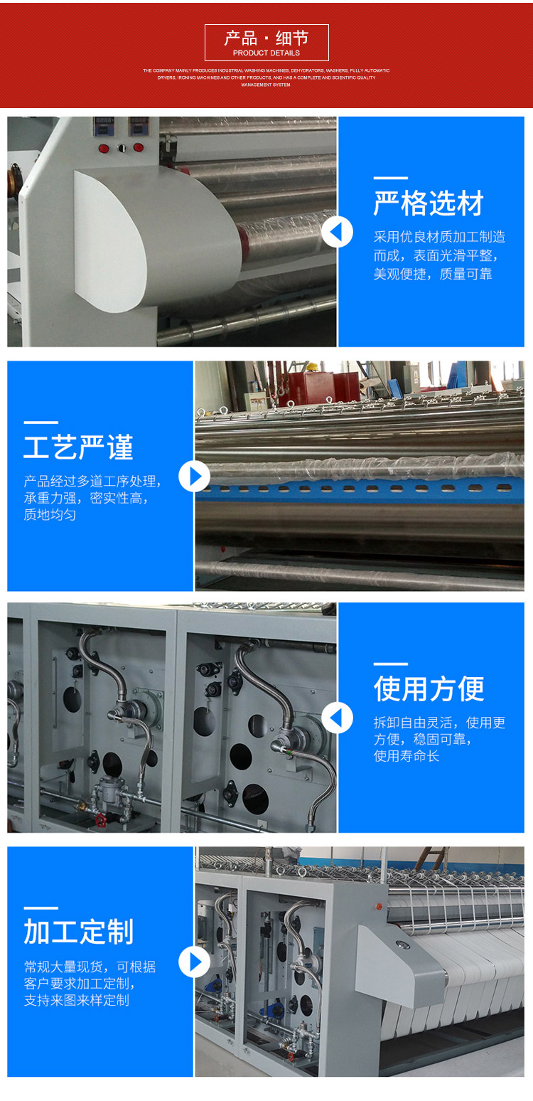 醫(yī)用燙平機烘筒采用直熱式,有效熨平面積利用率超過四分之三。