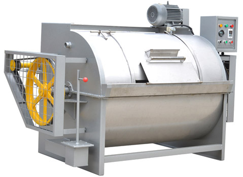 水洗機是滾筒型,內(nèi)、外殼采用優(yōu)質(zhì)不銹鋼制作而成,平整光滑、耐腐蝕、不損傷織物。水洗機由內(nèi)筒、外筒、電機、支撐總成、傳動總成、電器總成組成。結(jié)構(gòu)合理、安裝使用方便。水洗機工作原理:由頂置電機、三角膠帶、帶動傳動總成,使內(nèi)筒作正反轉(zhuǎn)運轉(zhuǎn),通過織物與織物、織物與內(nèi)筒壁的相互摩擦,達(dá)到洗滌效果。機器內(nèi)置過熱、過載裝置、定時裝置、正反轉(zhuǎn)控制裝置。水洗機外筒門設(shè)有安全裝置,若運行中門被打開,機器立即停止運轉(zhuǎn),確保機器、操作人員的安全。按容量大小分為:15kg、30kg、50kg、70kg、100kg、150kg、200kg等系列。該容量為干衣物的重量。